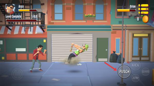 3、當(dāng)敵人近身,點擊右側(cè)PUNCH按鈕出拳,擊飛敵人,持續(xù)輸出,完成Level1戰(zhàn)斗。