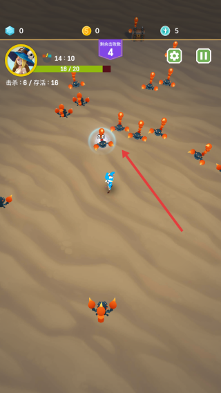 3、在游戲場景中,操控角色躲避敵人攻擊,同時(shí)發(fā)起反擊,消滅敵人,努力提升擊殺數(shù)和存活數(shù)。