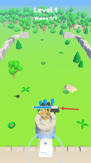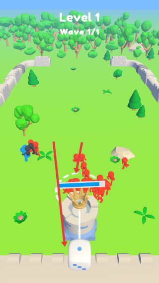 1、Level1Wave1/1,點擊下方骰子,投擲召喚士兵,抵御紅色敵人進攻城堡。
