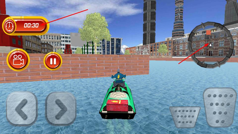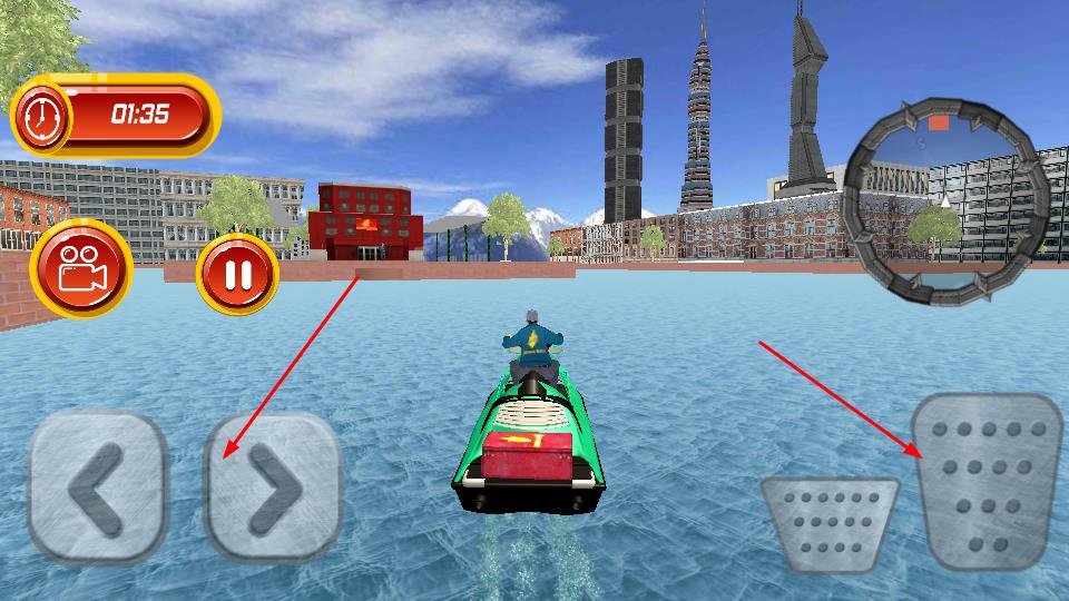 2、在游戲中通過左右箭頭按鍵控制摩托艇轉(zhuǎn)向,利用加速按鍵提升速度,朝著目標前行。