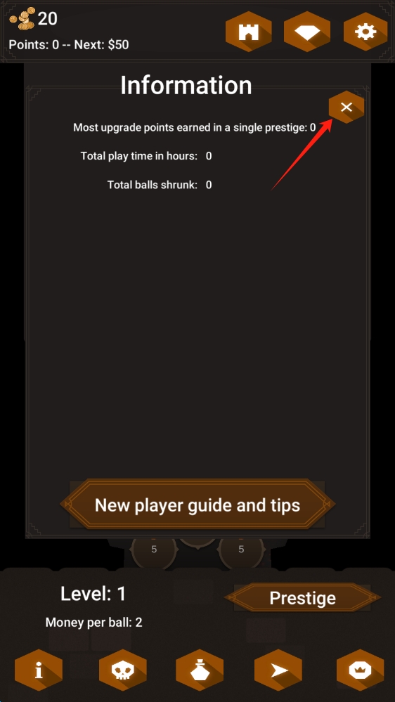 1、在游戲信息界面,點(diǎn)擊×,關(guān)閉信息提示,專注游戲操作,點(diǎn)擊按鈕關(guān)閉頁面。