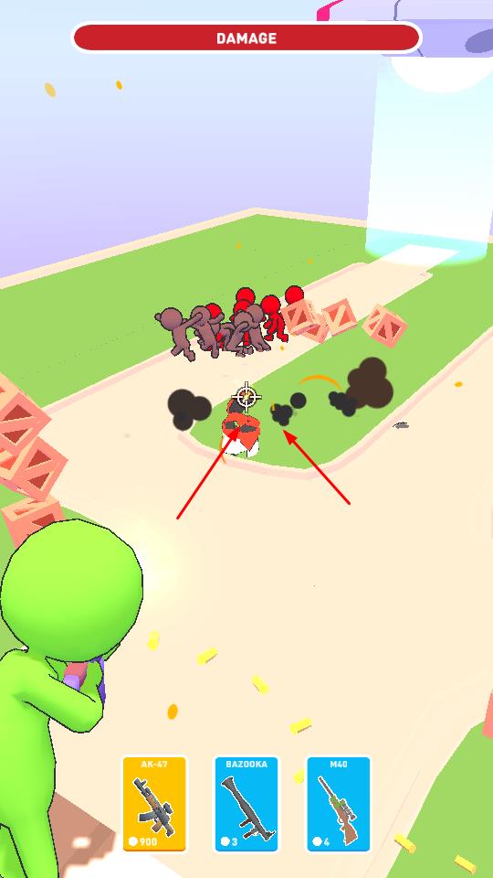 2、在射擊過程中,關(guān)注上方顯示的傷害值,努力提升傷害輸出,擊敗更多的敵人,同時(shí)避開賽道上的障礙物,如木箱等。