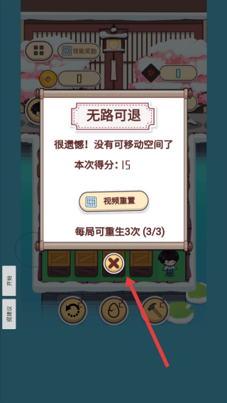 3、若出現(xiàn)無路可退提示,可以點(diǎn)擊彈窗中的關(guān)閉按鈕,可利用重生機(jī)會重新挑戰(zhàn)該關(guān)卡。