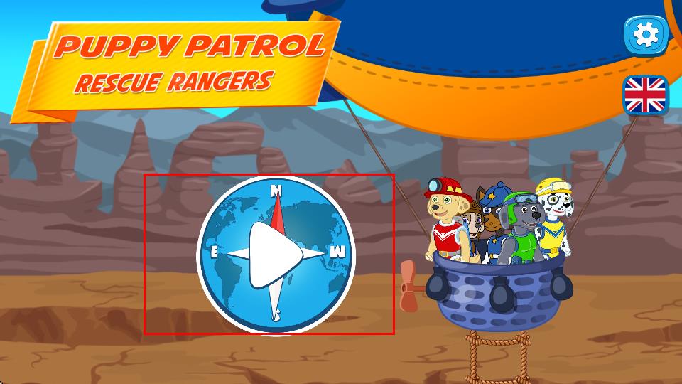 1、首先進(jìn)入游戲界面,點(diǎn)擊類似指南針播放按鈕,開啟汪汪隊(duì)救援冒險(xiǎn),與角色們一同登上飛艇出發(fā)。