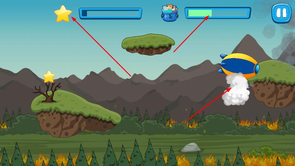 3、飛行中收集星星為上方進(jìn)度條充能,關(guān)注另一進(jìn)度條狀態(tài),合理規(guī)劃路線,完成救援任務(wù)目標(biāo)。