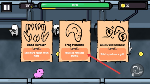3、遇到技能選擇界面,依據(jù)戰(zhàn)斗需求,點擊Frog-Mutation技能,助力Lanny在逃亡中對抗敵人。