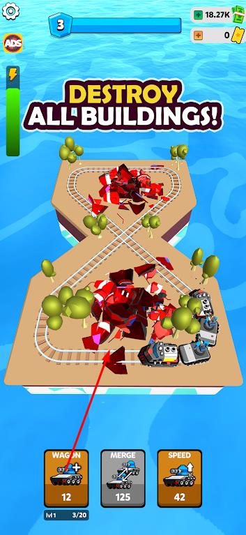 1、解壓玩法設計:拆解列車部件的過程解壓暢快,搭配簡單輕擊控制,讓玩家輕松投入,在摧毀與構建中釋放壓力,收獲愉悅。