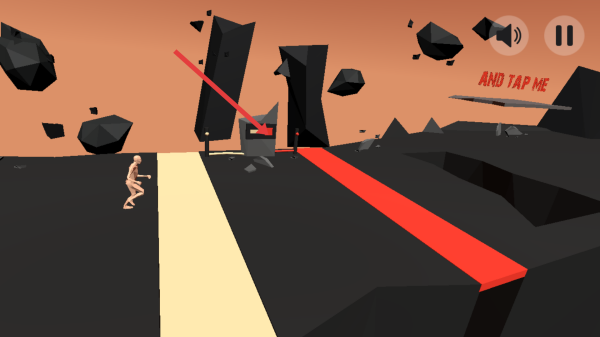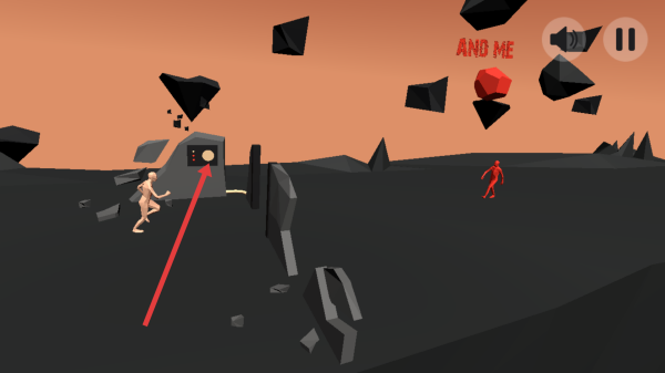 1、進入場景,操控肉色的小人點擊他向前跑,通過滑動屏幕來控制角色的移動方向,點擊前方紅色的石塊砸向敵人。
