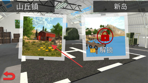 2、在地圖選擇界面,選擇紅色箭頭所指的山丘鎮(zhèn)地圖,進入該地圖進行直升機駕駛挑戰(zhàn)。