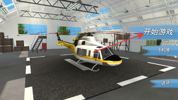 1、進入游戲界面,點擊開始游戲按鈕,開啟直升機駕駛的游戲冒險。