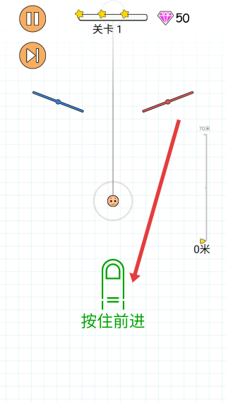 1、游戲開始后,看到按住前進(jìn)提示時,長按屏幕讓角色前進(jìn),這是推動游戲進(jìn)程的基礎(chǔ)操作,可使角色朝著目標(biāo)移動。