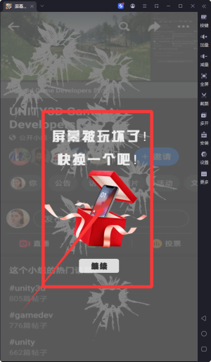 2、游戲?qū)崿F(xiàn)全屏覆蓋式整蠱效果,碎屏畫面完整呈現(xiàn),增強視覺沖擊力,使惡搞效果更加震撼人心。
