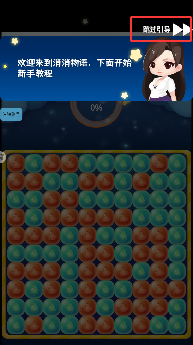 2、進(jìn)入游戲后會有一段新手教程,可以點(diǎn)擊右上角跳過。