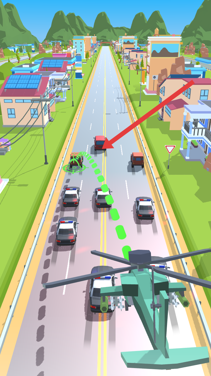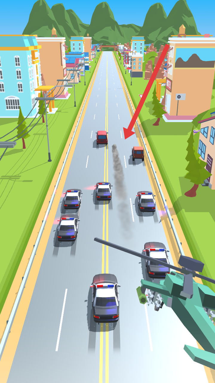 2、在操控直升機(jī)進(jìn)行攻擊時,需要注意擊中箭頭指向的追捕區(qū)域,制造阻礙阻止車輛擺脫追捕。