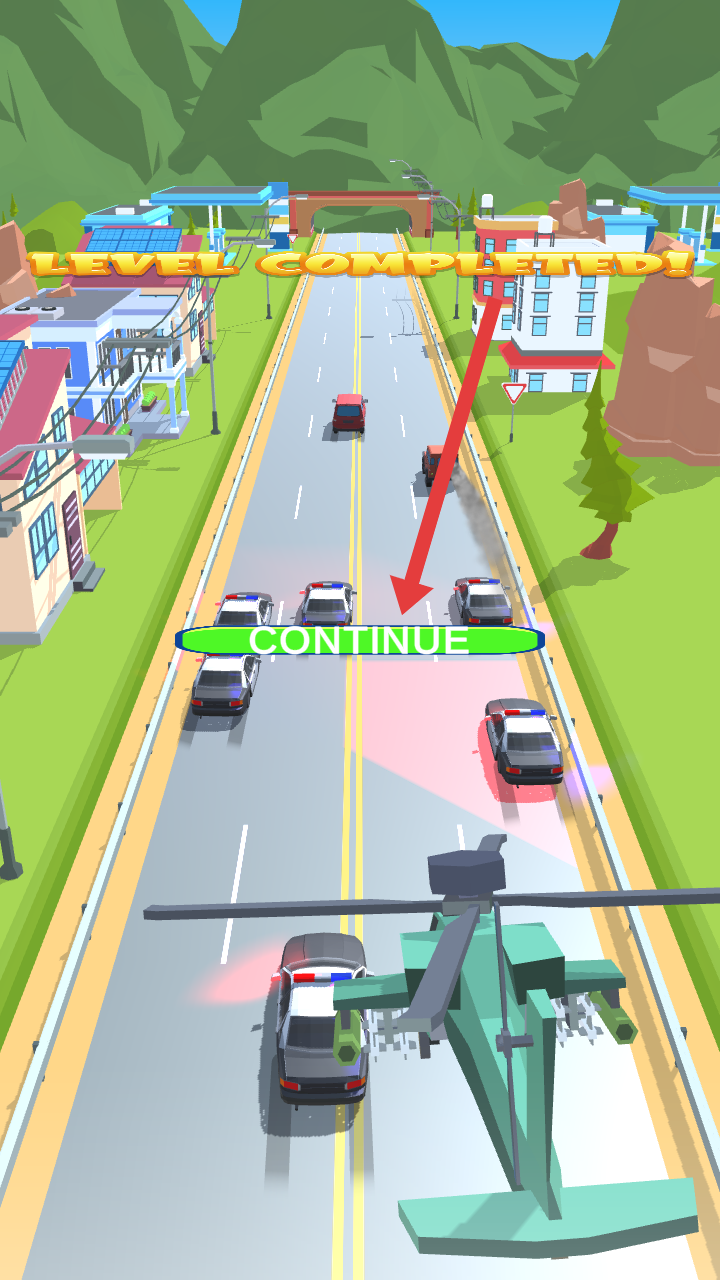 3、如果沒有在時間內(nèi)追捕所有車輛需要重新開始,點擊綠色CONTINUE的按鈕,開啟新的追捕。