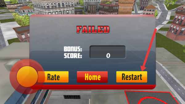 3、直升機(jī)墜毀顯示FAILED的時(shí)候,需要點(diǎn)擊黃色Restart的按鈕,重新開始挑戰(zhàn)這個(gè)關(guān)卡。