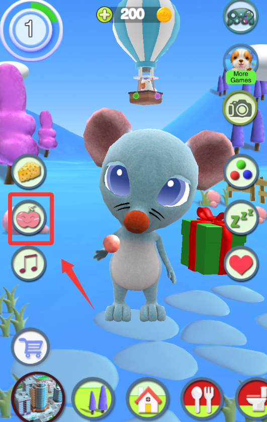 3、點擊紅色框框的蘋果,給老鼠補點維生素C吧。