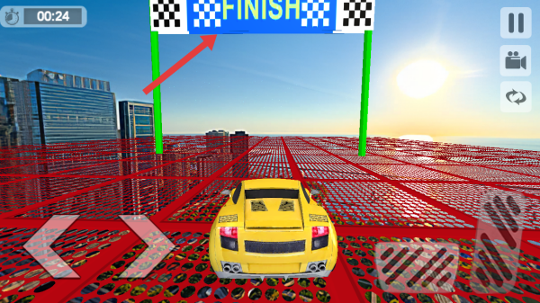 2、需要操控黃色賽車,沿著賽道沖刺,穿越箭頭指向的FINISH的終點線,完成計時的挑戰(zhàn)。