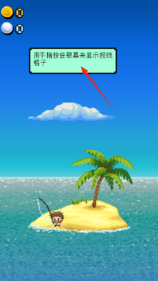 1、進(jìn)入荒島釣魚按照提示用手指按住屏幕,觸發(fā)投線格子顯示,通過此操作為釣魚做準(zhǔn)備,掌握投線輔助工具,體驗(yàn)釣魚前期準(zhǔn)備機(jī)制。