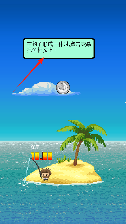 3、當(dāng)魚鉤形成一體時(shí)點(diǎn)擊屏幕拉動(dòng)魚竿,把握時(shí)機(jī)操作,嘗試釣起魚獲,完成釣魚流程,體驗(yàn)收桿釣魚機(jī)制。