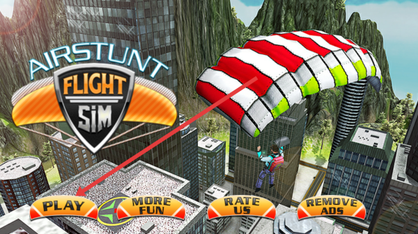 1、在游戲主界面點(diǎn)擊PLAY按鈕,進(jìn)入關(guān)卡選擇頁(yè)面,開(kāi)啟Airstunt-Flight-Sim的飛行挑戰(zhàn)。