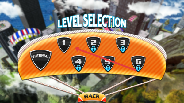 2、高空方向控制:乘坐飛機(jī)抵達(dá)五千米高空后開(kāi)始降落,控制方向避開(kāi)危險(xiǎn),瞄準(zhǔn)地面紅色區(qū)域等合適降落點(diǎn)調(diào)整軌跡。