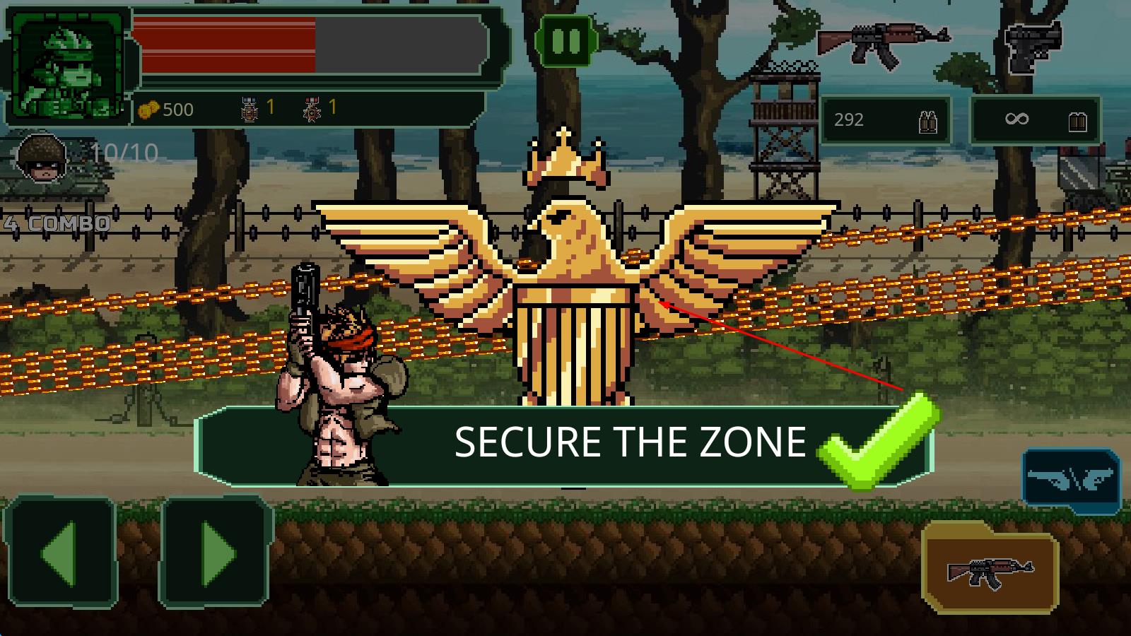 2、戰(zhàn)斗中,收集金幣與道具,購買升級武器,應(yīng)對特種兵、機(jī)械兵等不同敵人,依據(jù)分布制定策略,完成解救人質(zhì)等關(guān)卡任務(wù)。