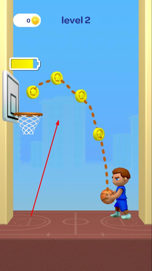 3、籃球按照軌跡飛行還有特殊效果,順利投入籃筐,同時(shí)收集金幣,隨著關(guān)卡推進(jìn),解鎖更多復(fù)雜的投籃場(chǎng)景和難度。