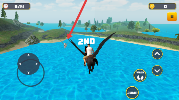 2、操控飛馬角色左側(cè)方向輪、右側(cè)功能鍵,追趕前方飛行的目標(biāo),提升排名當(dāng)前排名為2ND。
