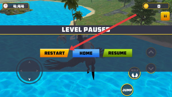 3、需要重啟關(guān)卡,在暫停界面點(diǎn)擊RESTART按鈕,回主菜單選HOME,或點(diǎn)擊RESUME繼續(xù)當(dāng)前游戲。