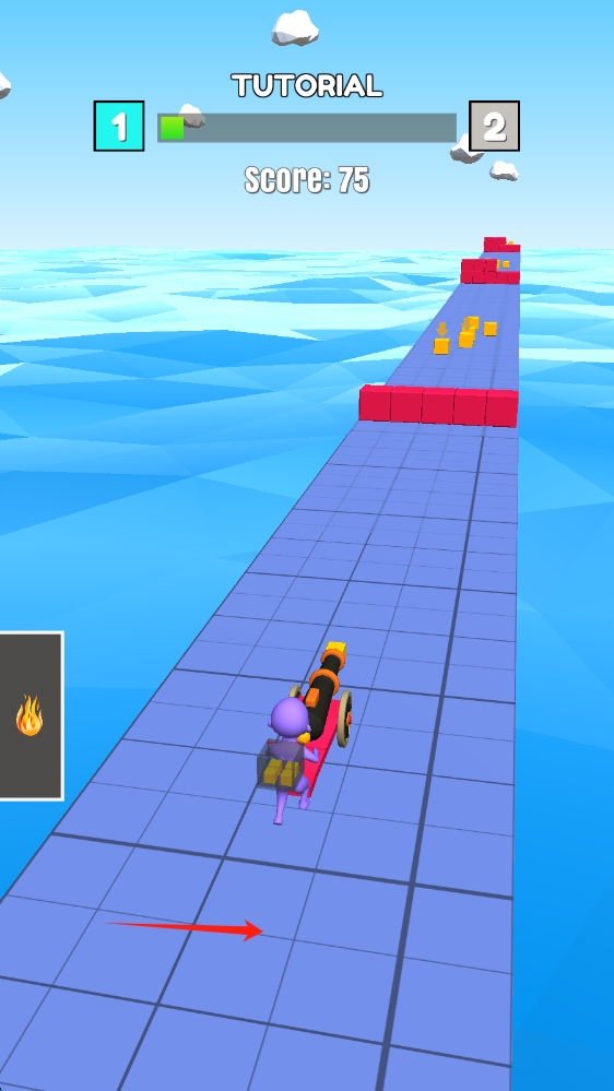 2、教程場景中,按指引操作,熟悉角色移動和射擊,積累得分,完成教學(xué)挑戰(zhàn),滑動移動人物。
