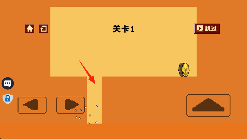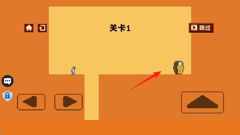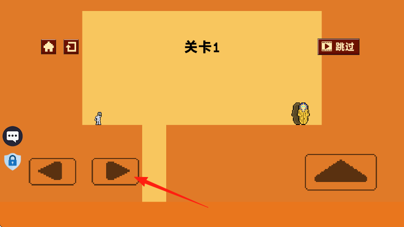 1、進(jìn)入游戲開始點(diǎn)擊左側(cè)箭頭按鈕,控制像素人向右移動(dòng),靠近黃色區(qū)域缺口。