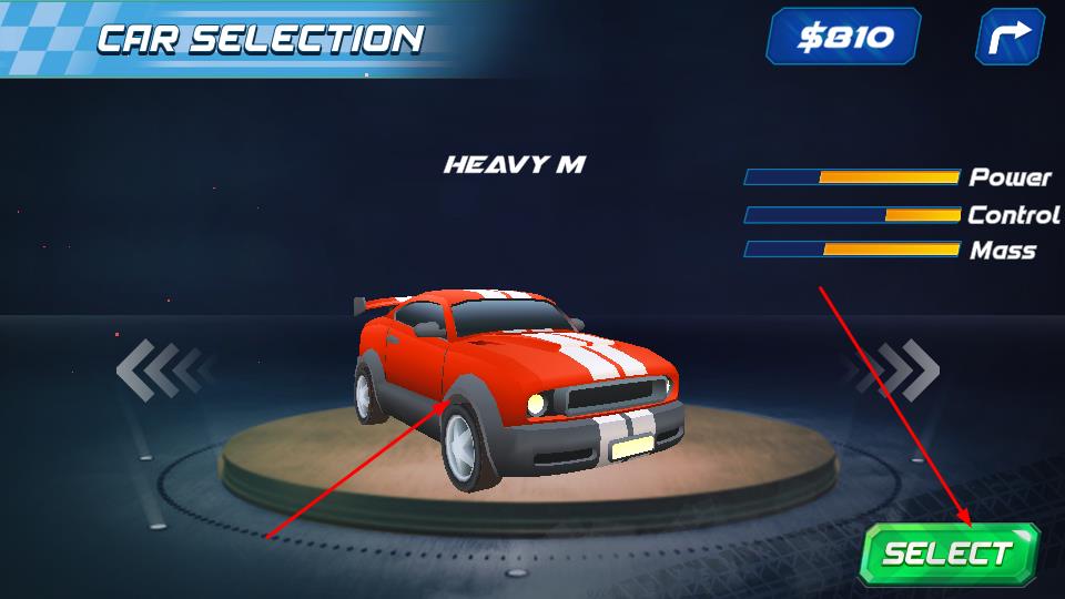 2、選定模式后進(jìn)入車輛選擇頁,Heavy M等車型的動(dòng)力、操控、質(zhì)量屬性以進(jìn)度條呈現(xiàn)供參考。