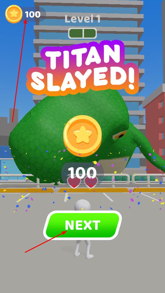 3、成功擊敗恐龍后,點擊NEXT進入下一關卡,同時獲取金幣獎勵,積累資源助力后續(xù)挑戰(zhàn)。