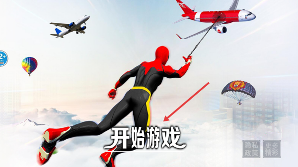 1、啟動(dòng)頁點(diǎn)擊開始游戲,進(jìn)入3D城市場(chǎng)景,化身為蜘蛛英雄,正式開啟刺激的動(dòng)作冒險(xiǎn)流程。