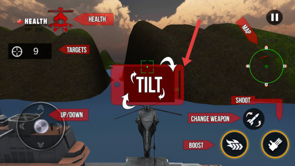 1、開啟TILT傾斜操控模式,可以選擇通過設備傾斜調(diào)整直升機飛行方向,適應面板的操作設定。