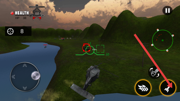 3、鎖定地面的目標后,可以點擊右下角導彈圖標,發(fā)射追蹤導彈進行攻擊敵人,完成消滅敵人的任務。
