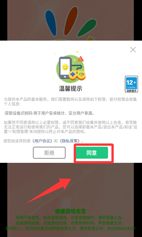 1、點擊溫馨提示紅色框框的同意并進入。