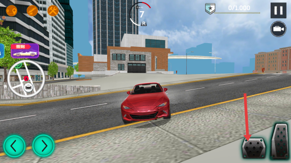 1、進(jìn)入賽道周?chē)米笙陆欠较蜴I控制轉(zhuǎn)向,右下角踏板控制加速剎車(chē),按小地圖左側(cè)圓盤(pán)指引。