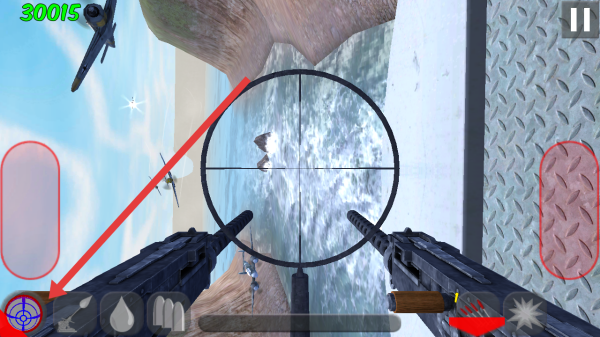 3、在進行殲滅敵人的時候,可以點擊左下角靶標(biāo)的圖案,切換射擊的視角,按照敵人的飛行軌跡切換。