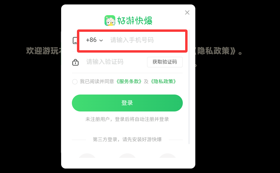 2、點(diǎn)擊紅色框框里輸入手機(jī)號(hào)碼點(diǎn)擊獲取驗(yàn)證碼。