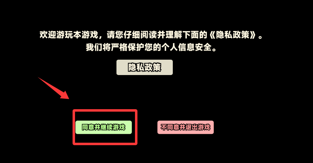 3、驗(yàn)證后點(diǎn)擊隱私政策的同意并繼續(xù)游戲。