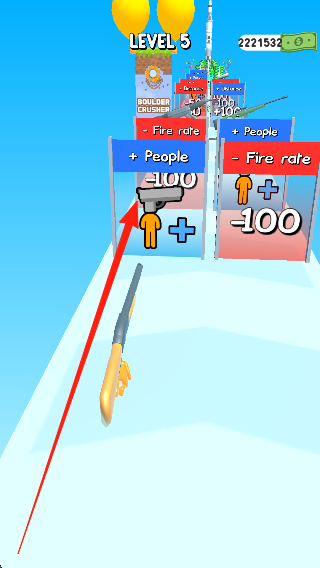 2、在賽道上持續(xù)向前沖,靈活躲避陷阱和障礙,遇到敵人時(shí)精準(zhǔn)射擊消滅他們,積累消滅數(shù)量。