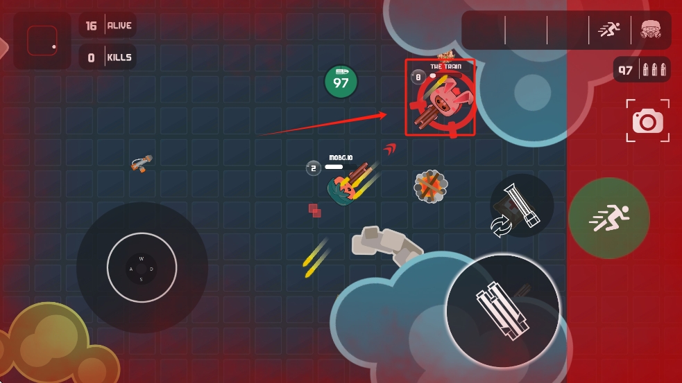 2、實(shí)時(shí)射擊對(duì)抗:遇到其他玩家時(shí),通過滑動(dòng)屏幕調(diào)整射擊方向,利用地形遮擋規(guī)避攻擊,優(yōu)先攻擊對(duì)手的側(cè)身或背后,提升命中率。