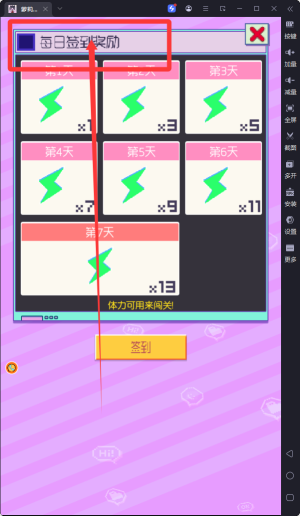 1、每日上線第一時(shí)間要查看您的簽到獎(jiǎng)勵(lì)哦,得到大量資源,方便后續(xù)游戲體驗(yàn)哦。