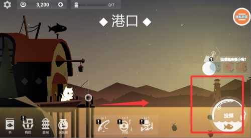 1、開始游戲后先熟悉拋竿操作,調整好角度和力度,確保魚鉤能準確落入目標水域提高釣魚成功率。