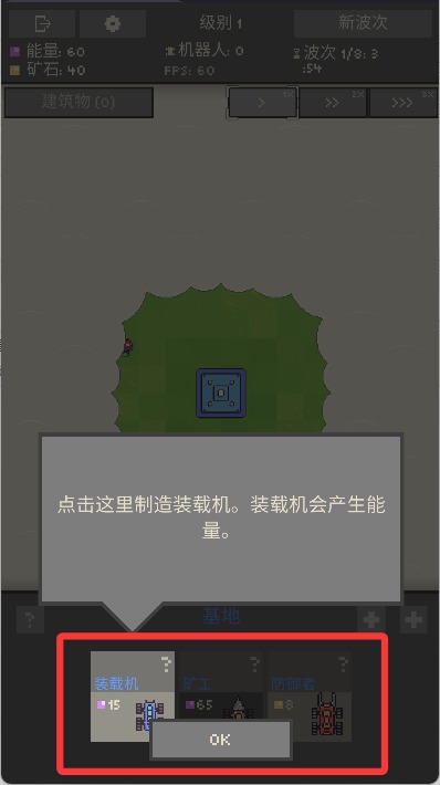 4、開始游戲后點(diǎn)擊下方制造裝載機(jī),裝載機(jī)會(huì)產(chǎn)生能量。