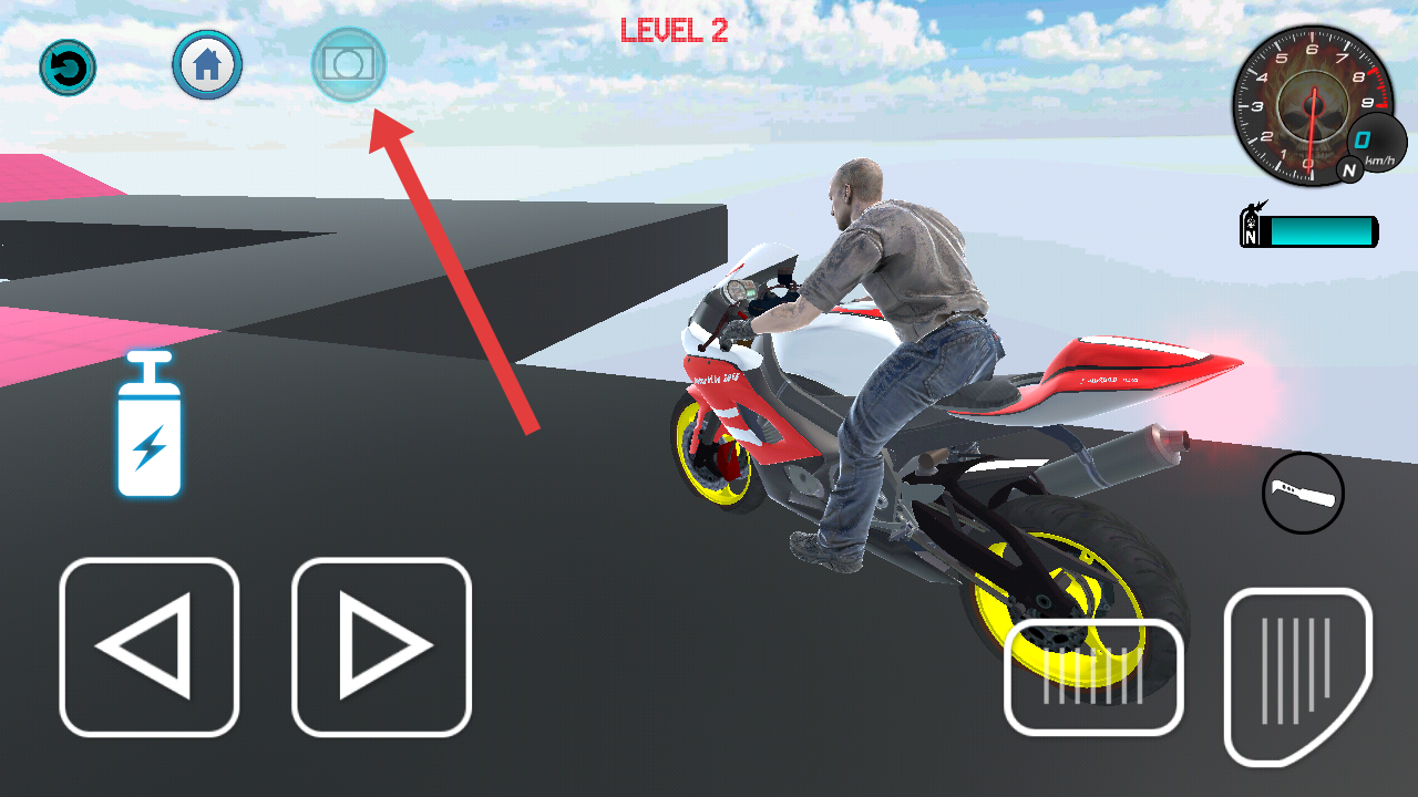 3、在駕駛途中,可以下載點擊左側閃電的圖標,觸發(fā)加速的技能,助力快速跨越上坡。