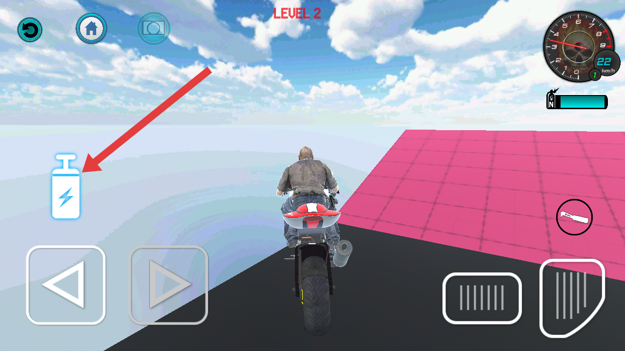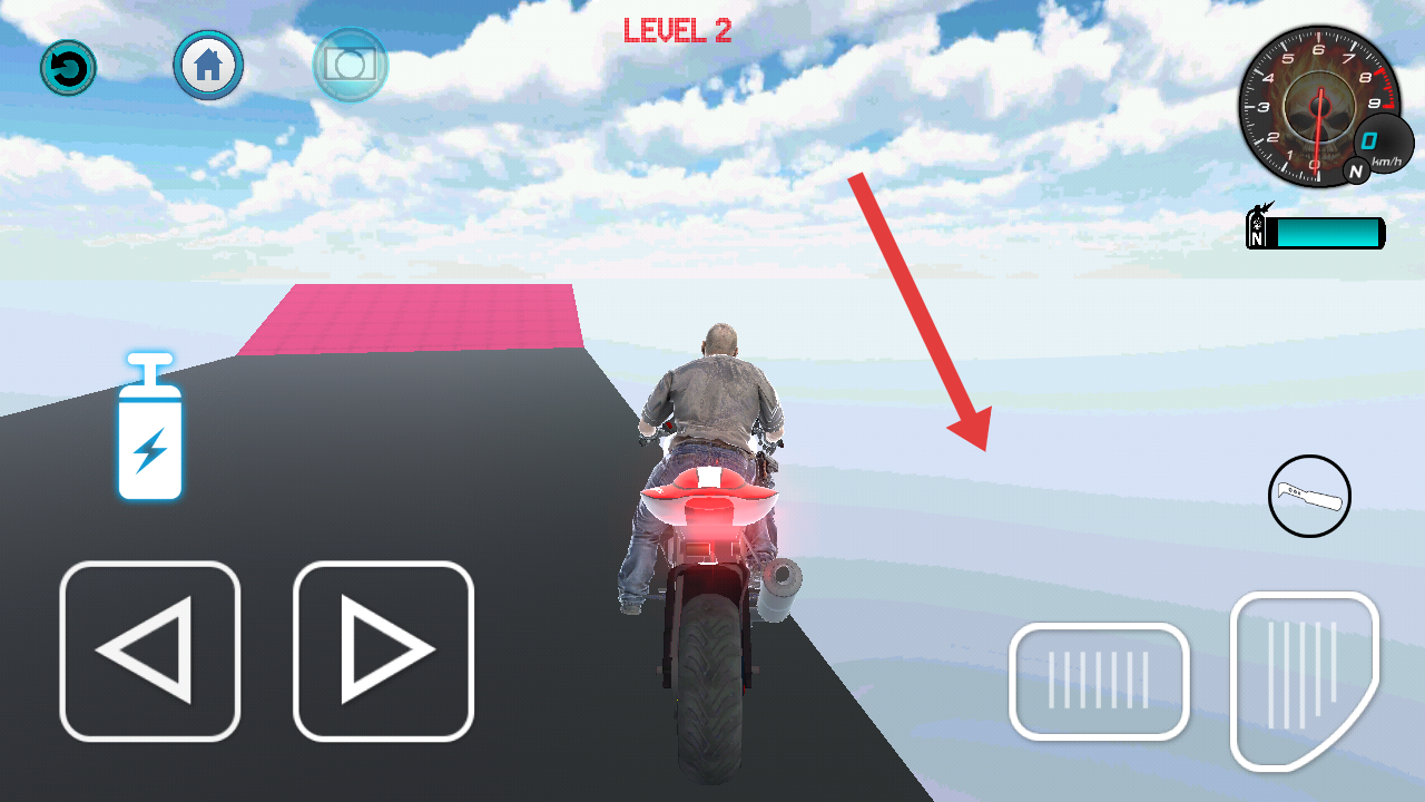 2、操控方向鍵進行轉向,右側踏板控速,平穩(wěn)駛向粉色平臺,小心不要駕駛到邊緣區(qū)域,避免墜落。