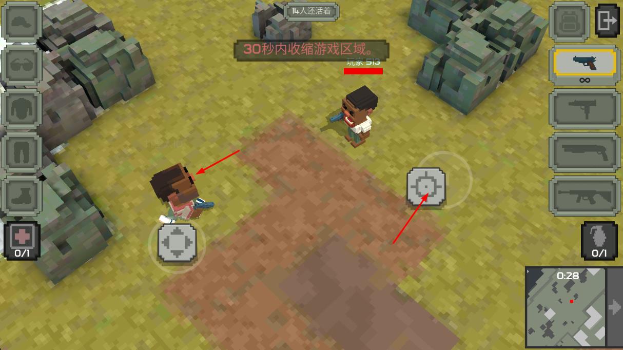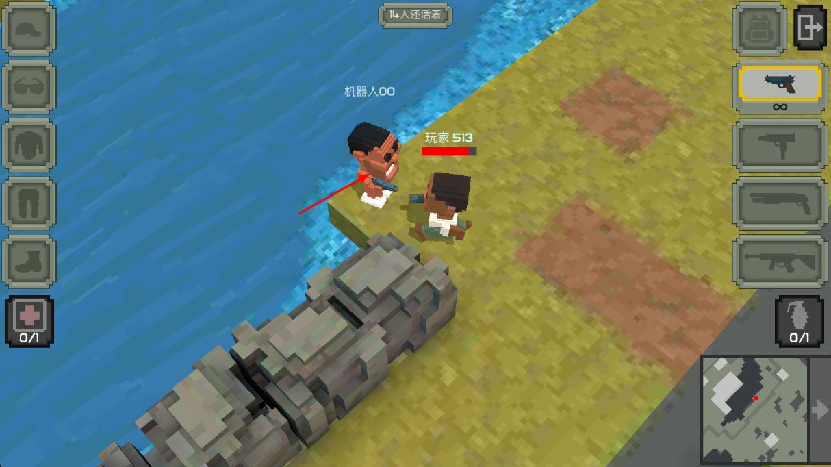 機(jī)槍亂斗中玩家將在像素風(fēng)格的戰(zhàn)場中展開激烈對決,操作簡單易上手,通過操控角色移動、瞄準(zhǔn)射擊與拾取裝備,在不斷縮小的安全區(qū)內(nèi)淘汰對手,爭奪最終勝利,包含多樣角色與趣味玩法,搭配明快的像素畫風(fēng),讓玩家在緊張刺激的對戰(zhàn)中,體驗暢快淋漓的吃雞樂趣,感受像素世界里的射擊狂歡。